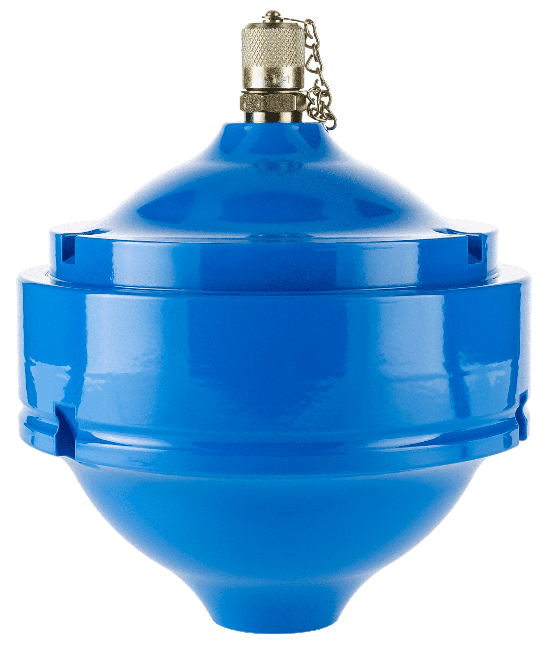 Gli accumulatori sferici LEDUC (AS-AC) sono costituiti da due calotte emisferiche assemblate mediante avvitamento, che serrano una membrana. Quest’ultima è dotata di un fermo metallico che chiude l’orifizio di uscita quando il fluido è completamente scaricato, evitando così qualsiasi rischio di danneggiamento della membrana. L’orifizio lato gas è equipaggiato con una valvola di gonfiaggio che consente di regolare la pressione di azoto nell’accumulatore.
